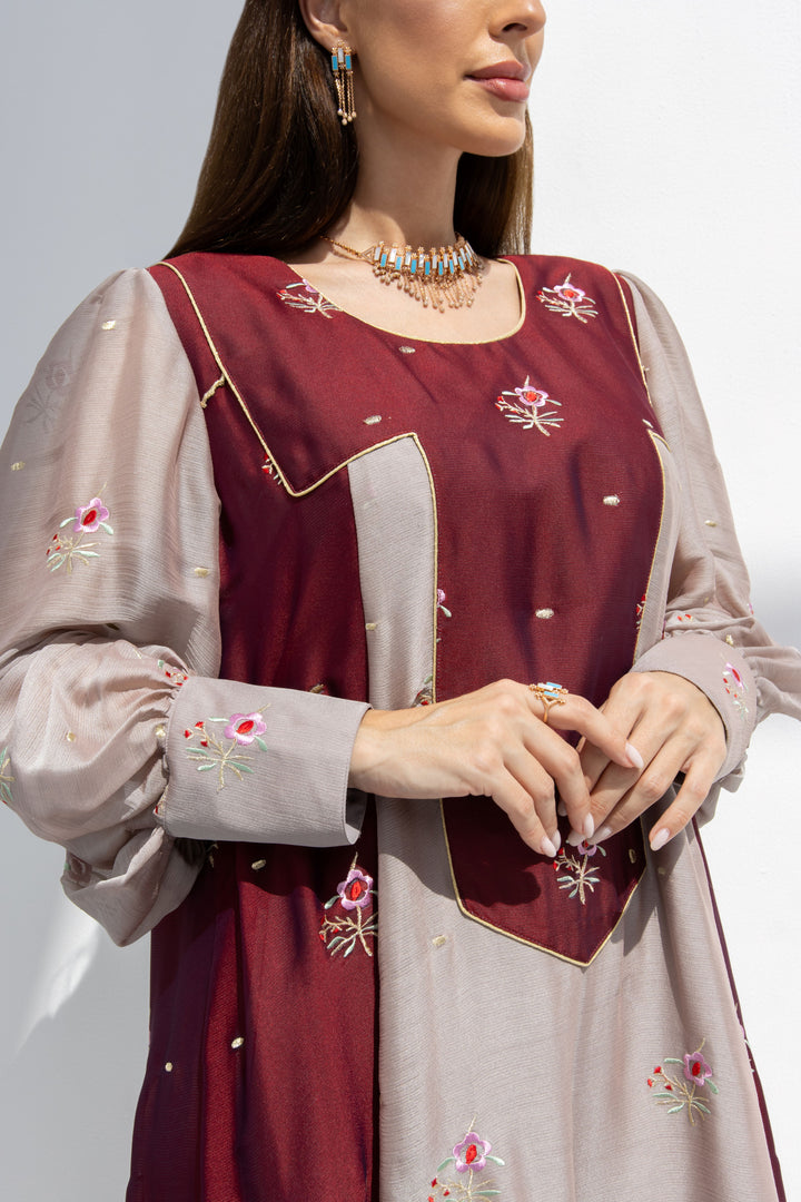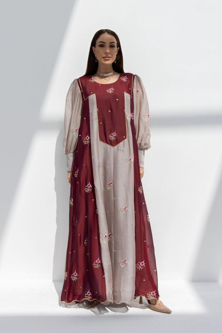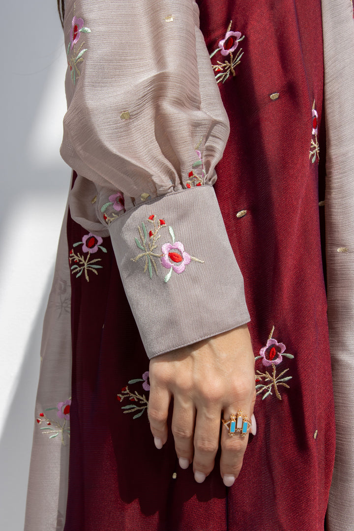 جلابية مستوحاه من الثراث الاماراتي في فكرة التطريز والتصميم