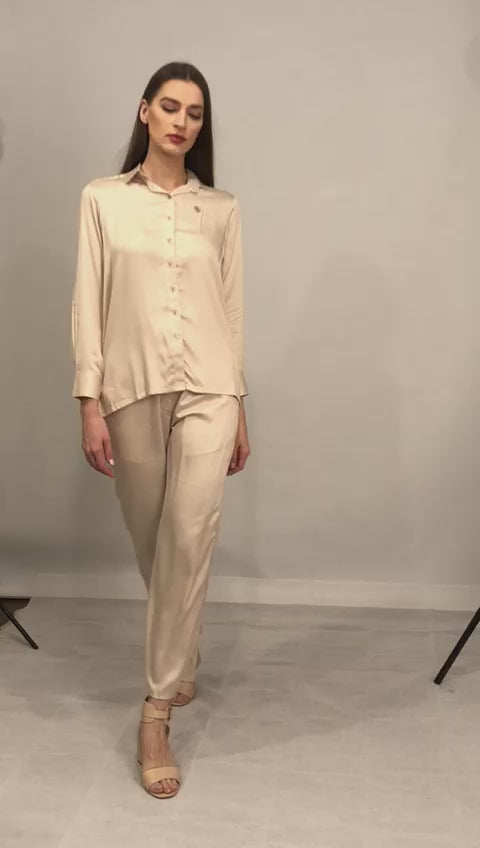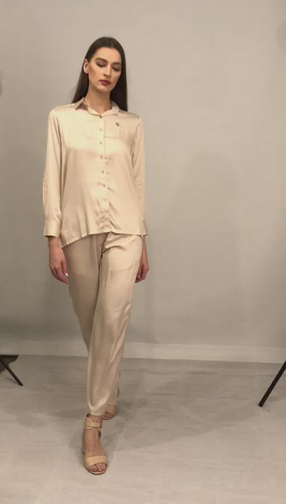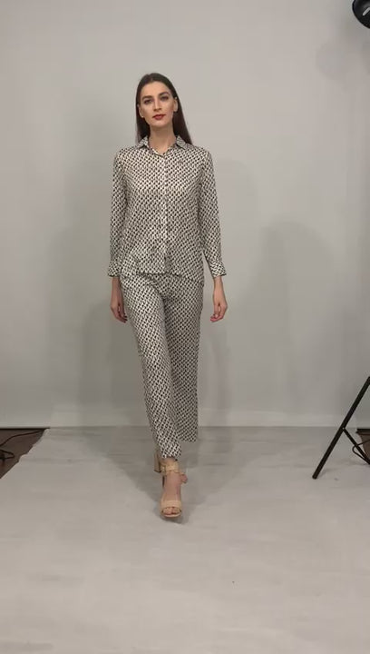 Feel comfortable and stylish in our Daisy set 🌼. Made from soft cotton, the pants and button-down shirt are perfect for everyday wear. The small daisy flower adds a cute touch to complete the look. Elevate your wardrobe with this versatile and trendy set!